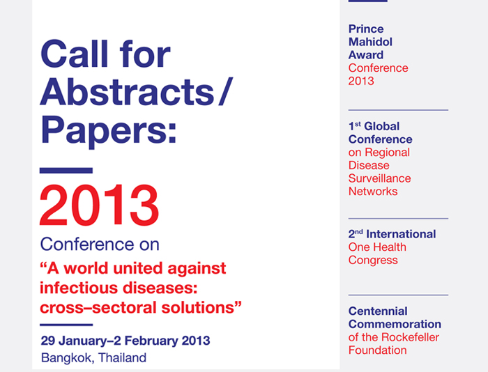 Organizer: The next International One Health Conference will be held in conjunction with Prince Mahidol Award Conference, the 1st Global Conference on Regional Disease Surveillance Networks, the Centennial Commemoration of the Rockefeller Foundation and in collaboration with WHO, FAO, and OIE.