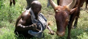 man and cow